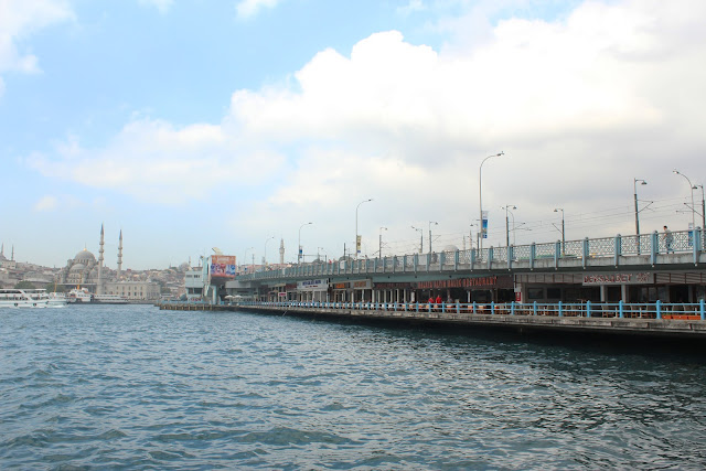 We woke up fairly early so we walked into the city and crossed the Galata Bridge, which spans the Golden Horn. Underneath the two sides of the bridge are several restaurants and cafes. Since it was so early in the morning, not many of them were open so we walked along the pedestrian path on the top of the bridge, which is lined with hopeful fishermen.